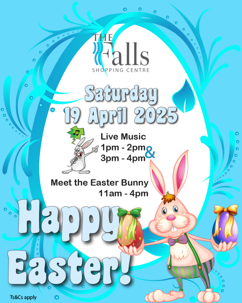 Visit us on Saturday 19 April 2025 for live music from 1pm-2pm / 3pm-4pm and meet the Easter Bunny from 11am-4pm.